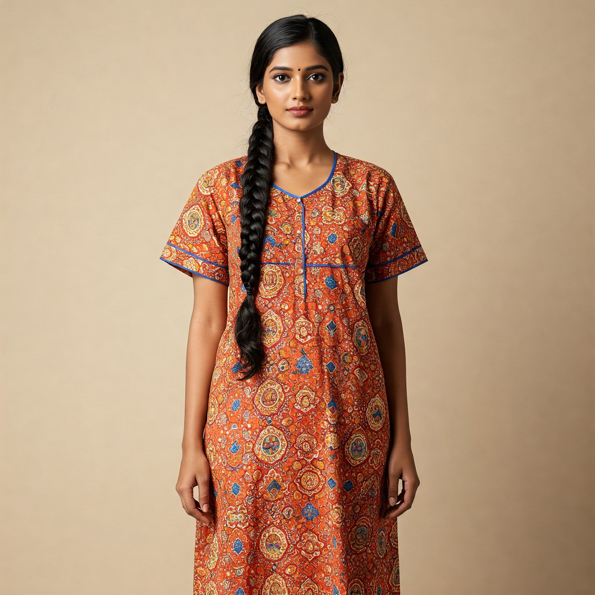 Our normal nighties are designed for comfort and ease, offering a relaxed fit for everyday wear. Soft, breathable fabrics ensure you stay cool and comfortable all night